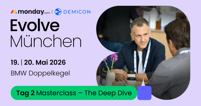 Save the date für Evolve 2026: Entdecken Sie Innovationen der monday Work OS Plattform und vernetzen Sie sich in München. Weitere Details folgen in Kürze.